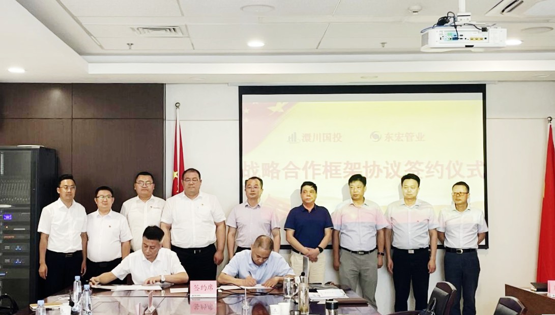 6月28日,公司與山東東宏管業(yè)簽署戰(zhàn)略合作框架協(xié)議,發(fā)揮各自優(yōu)勢(shì)進(jìn)行產(chǎn)業(yè)鏈招商、水務(wù)水利項(xiàng)目合作。東宏管業(yè)副董事長(zhǎng)、總裁倪奉堯,澴川國(guó)投總經(jīng)理陳情出席簽約儀式并講話。
