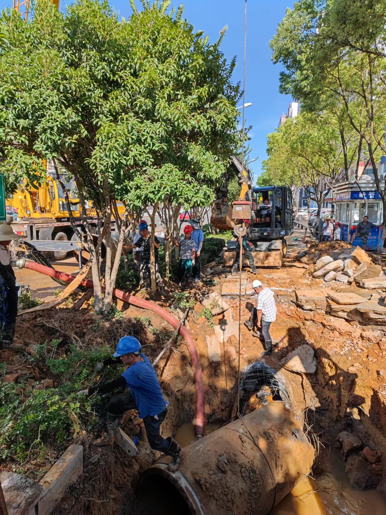 經(jīng)過15個小時的連續(xù)奮戰(zhàn),次日凌晨1點完成搶修任務(wù),乾坤大道沿線實現(xiàn)通水。