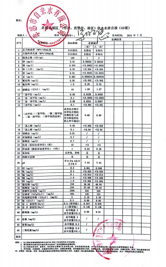 2023年7月水質(zhì)報告