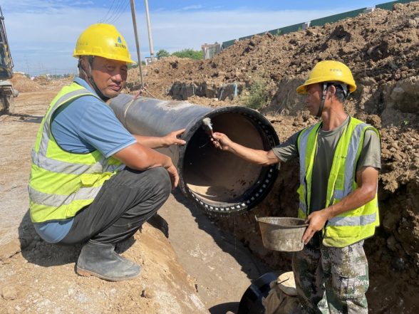 近期我市出現(xiàn)持續(xù)高溫天氣,為加快推進城市重點供水管網(wǎng)建設(shè),澴川國投暢泉公司的施工人員搶抓晴好天氣,緊鑼密鼓地加緊施工。