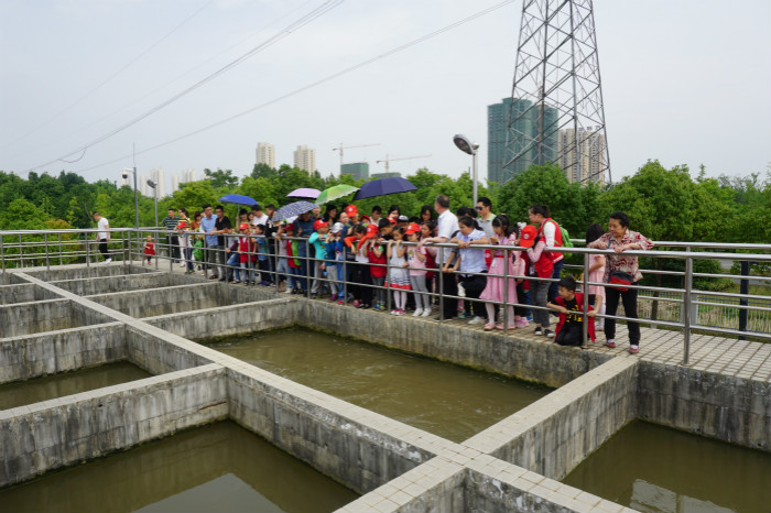 小記者們都是第一次走進水廠,對每道生產(chǎn)流程都非常好奇,對每件處理設(shè)施都饒有興趣,一路走一路七嘴八舌地詢問;三水廠工作人員則結(jié)合水處理流程和工作原理,用淺顯而生動的語言為他們一一講解說明,耐心細致地解答著每一個提問。在反應沉淀池上,小記者們看到了渾濁的源水由兩根巨大輸水管道輸送到絮凝反應池里,當他們得知這里的源水都是來自34公里以外的漢江時,不由得咋舌驚嘆“原來我們每天喝的自來水需要輸送那么遠的距離啊,真是太不容易了!”