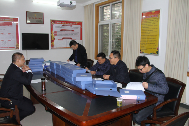 檢查組查看供水規(guī)范化管理有關(guān)資料