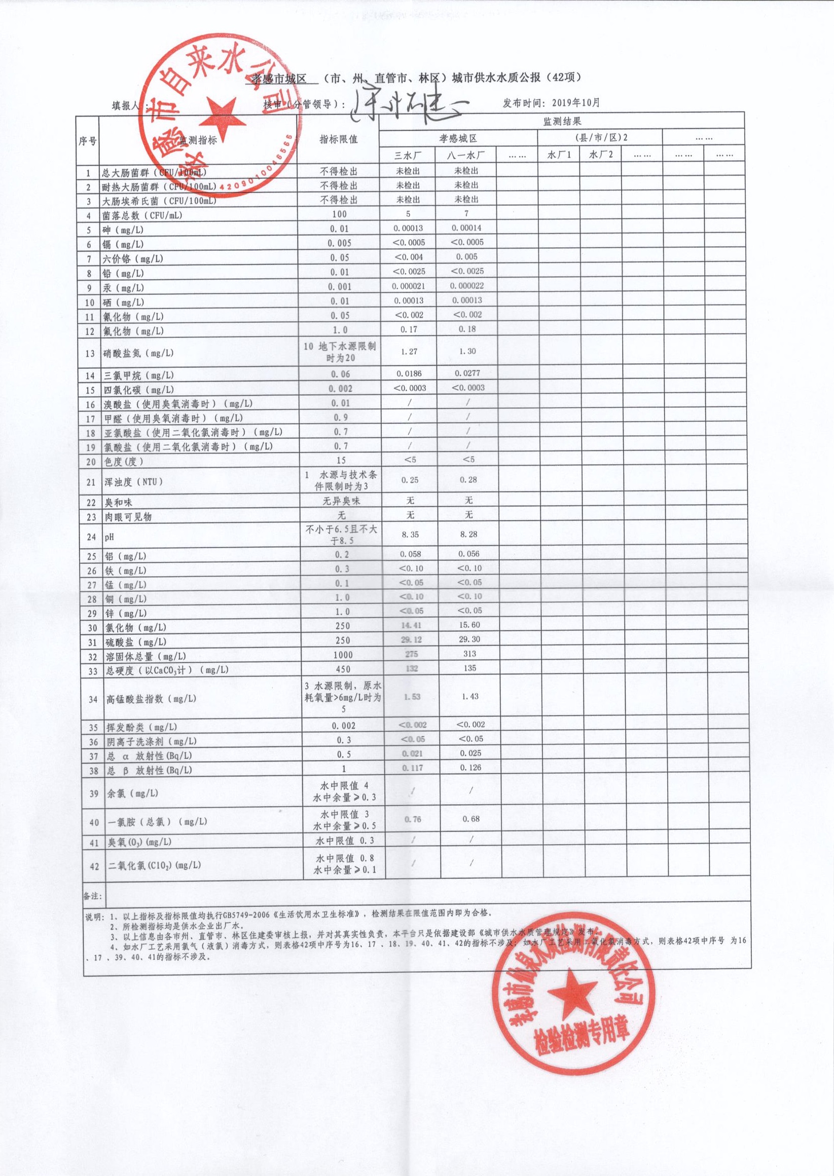2019年10月水質(zhì)報(bào)告