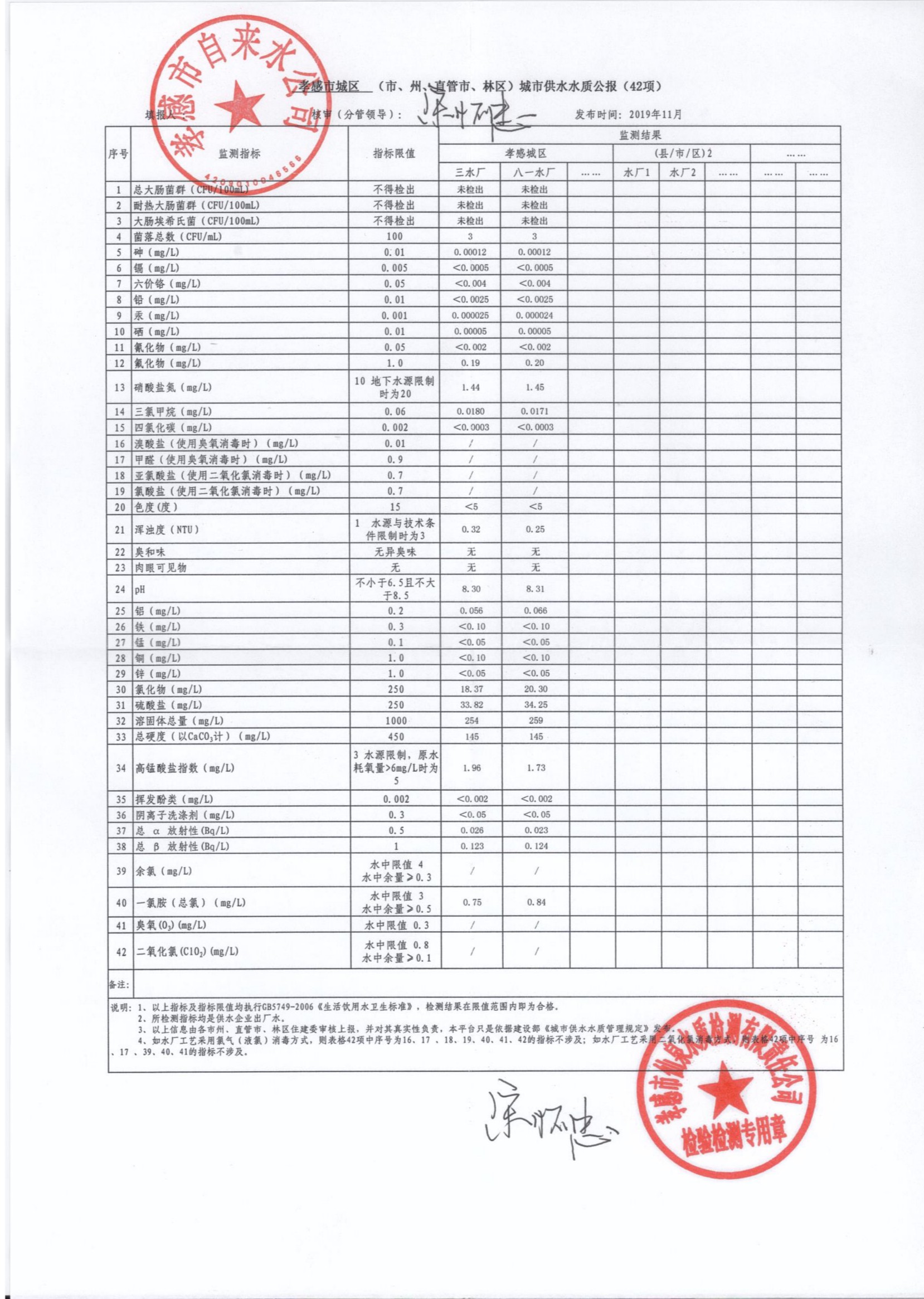2019年11月水質(zhì)報(bào)告