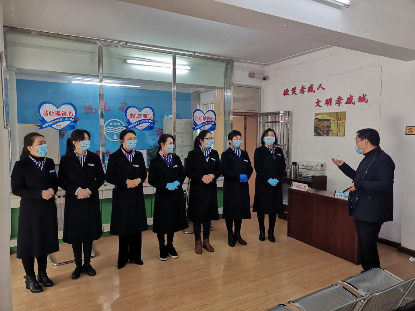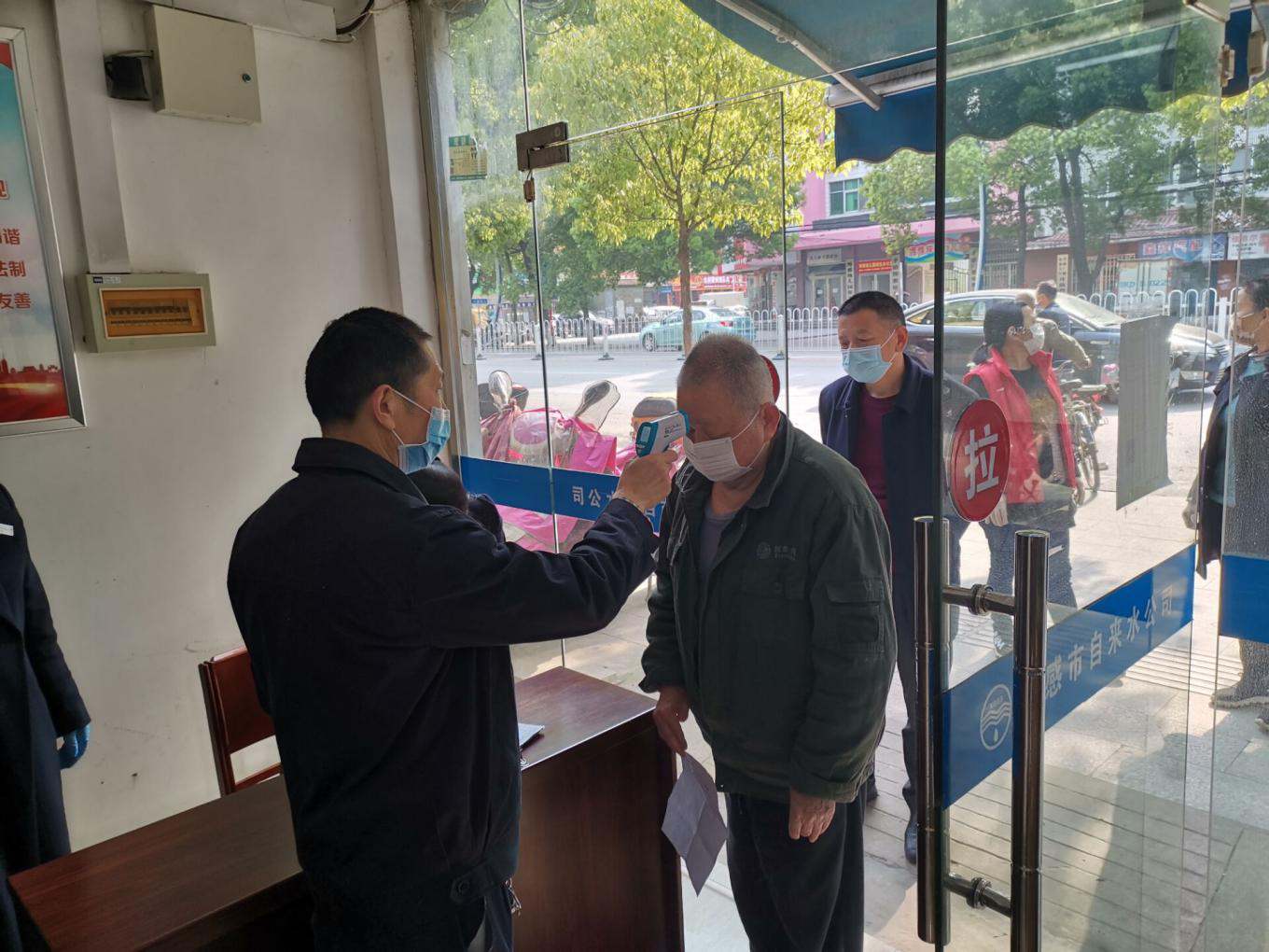 當天上午8:00左右,公司所轄的玉泉路、市民之家、城站路三個客服營業(yè)網(wǎng)點,早早開門受理業(yè)務。大廳接待場所全面消殺、門口臨時增放候位板凳、布置安全防護設施等等。窗口人員按照要求配帶口罩,久違的微笑、貼心的問候如沐春風。