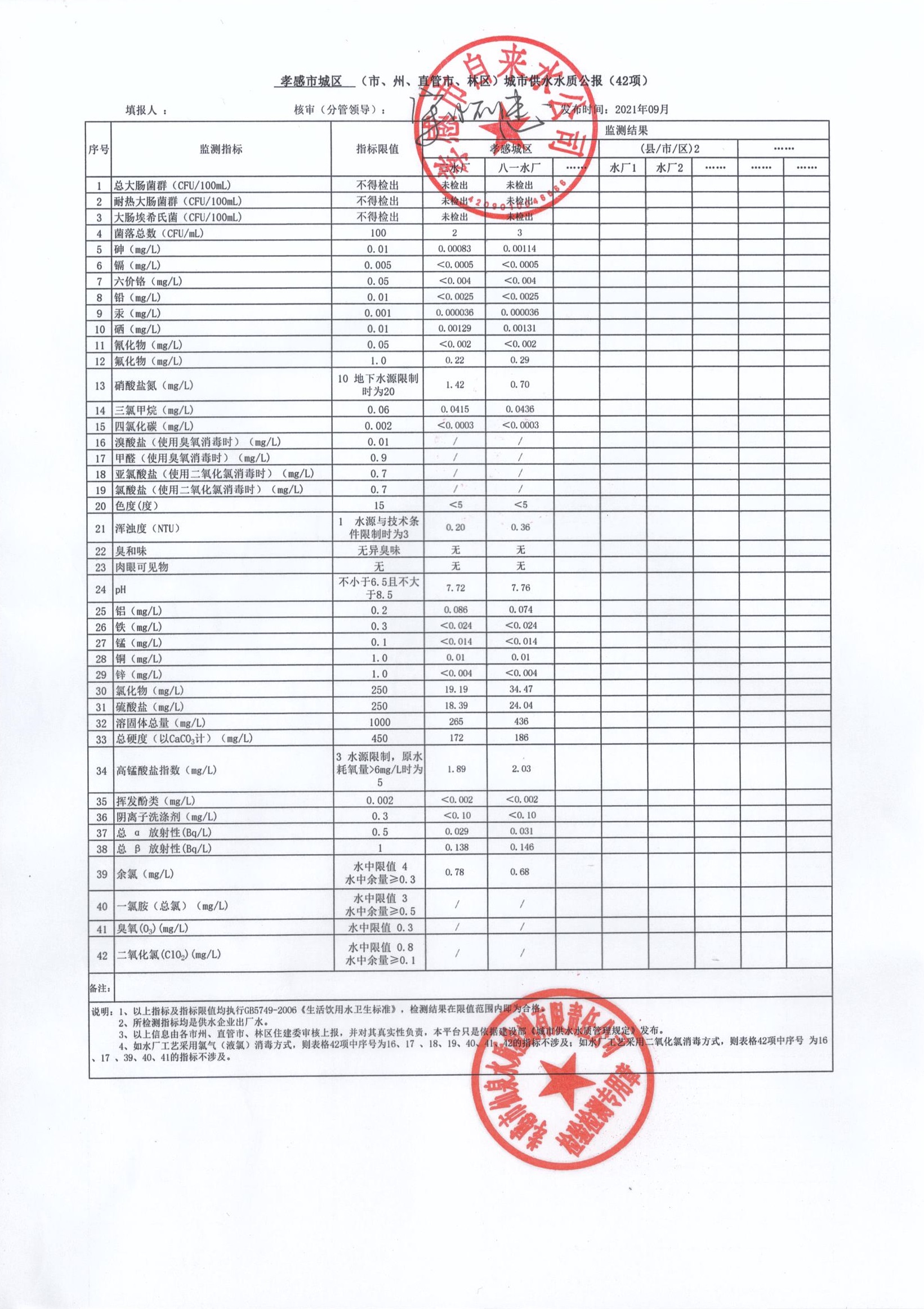 2021年9月水質(zhì)報(bào)告